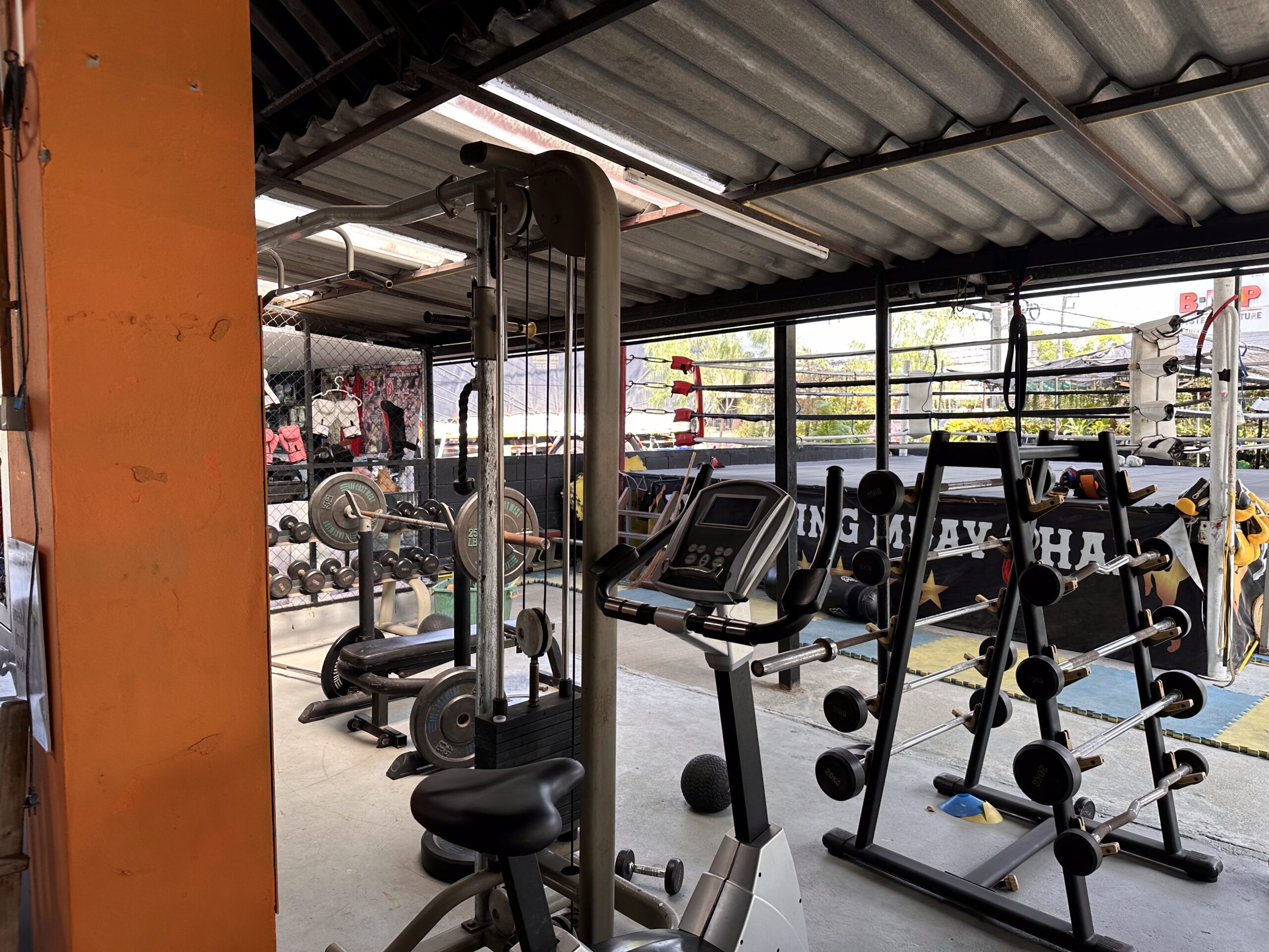 Train in a space built for real fighters. Our gym features a full-size ring, 15 heavy bags, and plenty of open space for training, pad work, and sparring. We also have a free weights area to help you build strength and power, complementing your Muay Thai training.